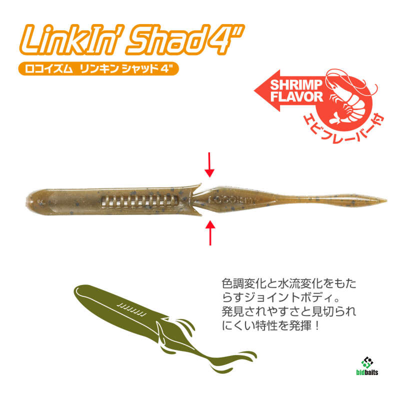 Tiemco LOCOism Linkin Shad 4 inch #133 Green Pumpkin / Black & Blue Flake