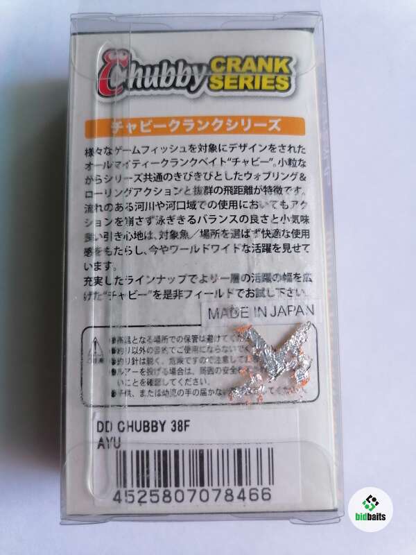 Новый, оригинал из старых запасов JACKALL DD CHUBBY 38F, color # AYU, (4,7g.) 1,5 - 2 m., made In Japan, не Вьетнам и не China. Главное назначение воблера Jackall DD Chubby 38 - выкашивать голавля всех размеров. В этом ему помогают частая игра, устойчивость на струе и маленькие габариты. А также он отлично работает по щуке и окуню!