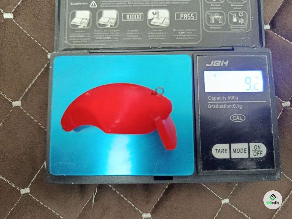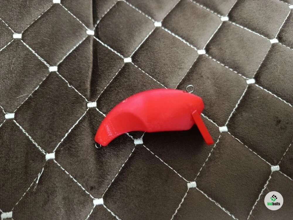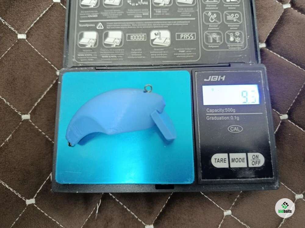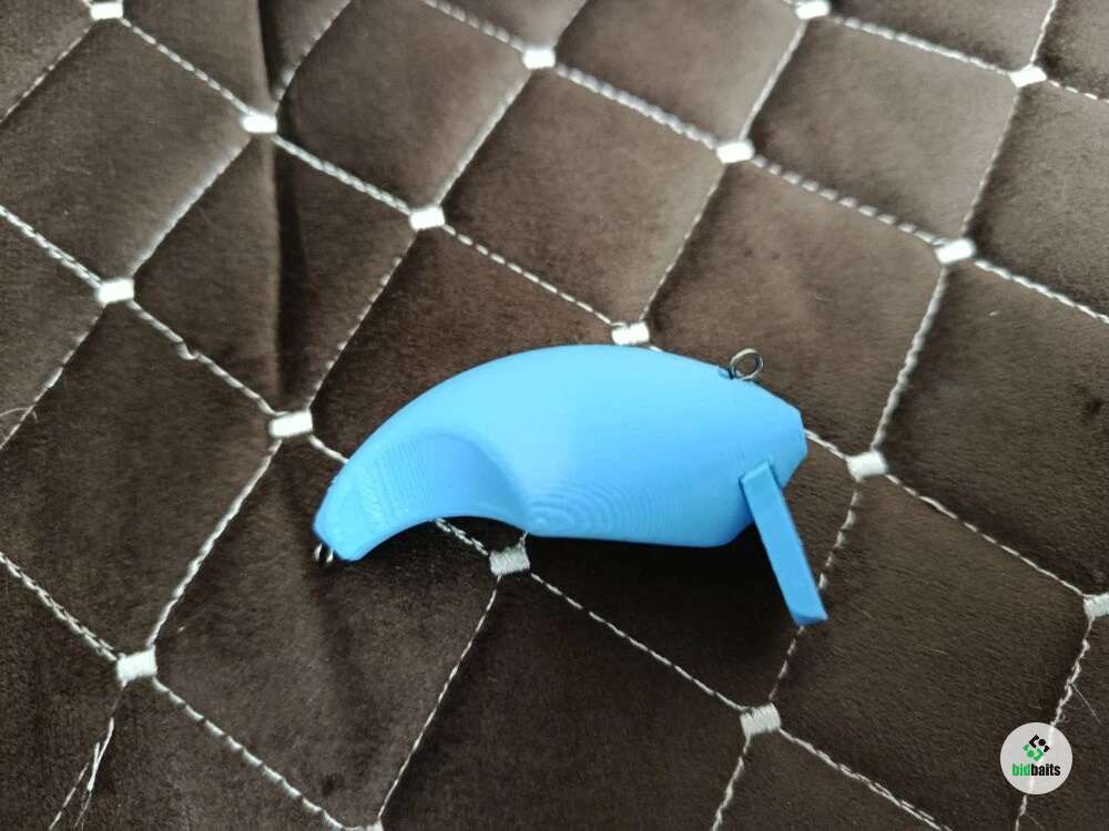 Воблер полностью напечатан на 3D принтере, что позволило добиться уникальной геометрии и идеального баланса. Внутри корпуса расположена шумовая камера с металлическим шариком, создающая привлекающий акустический эффект при любой проводке.