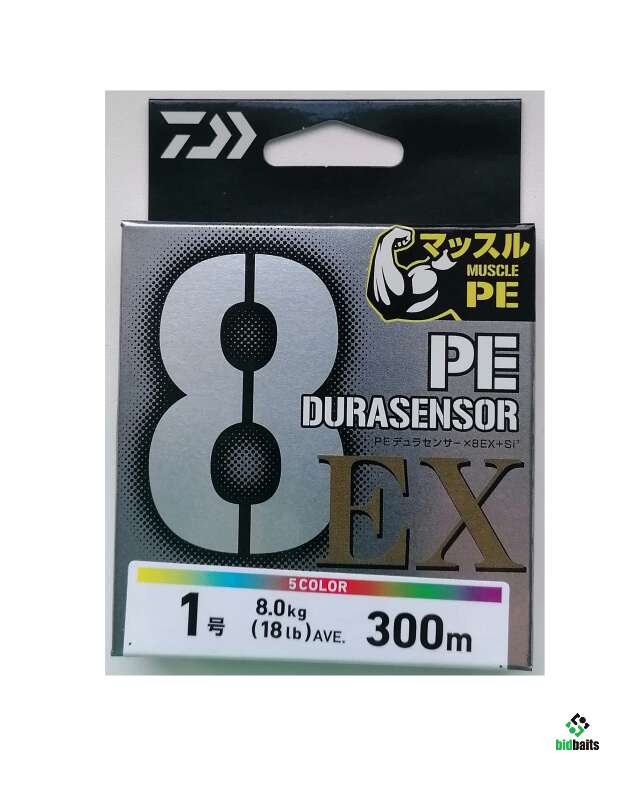 8-ми жильный шнур DAIWA UVF PE Dura Sensor x8 EX+Si3 300m #1 (18lb) 8kg, цвет - пятицветный.