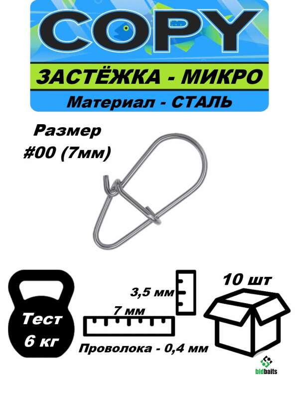 Застежка-карабин рыболовная Микро #00 - 7мм (10шт)