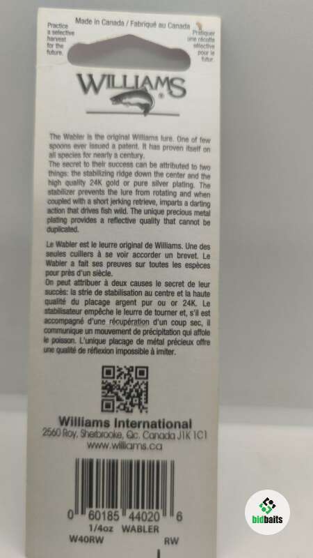 Блесна Williams Wabler W40 7г. 5,7 см. цвет RW (Оригинал)