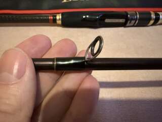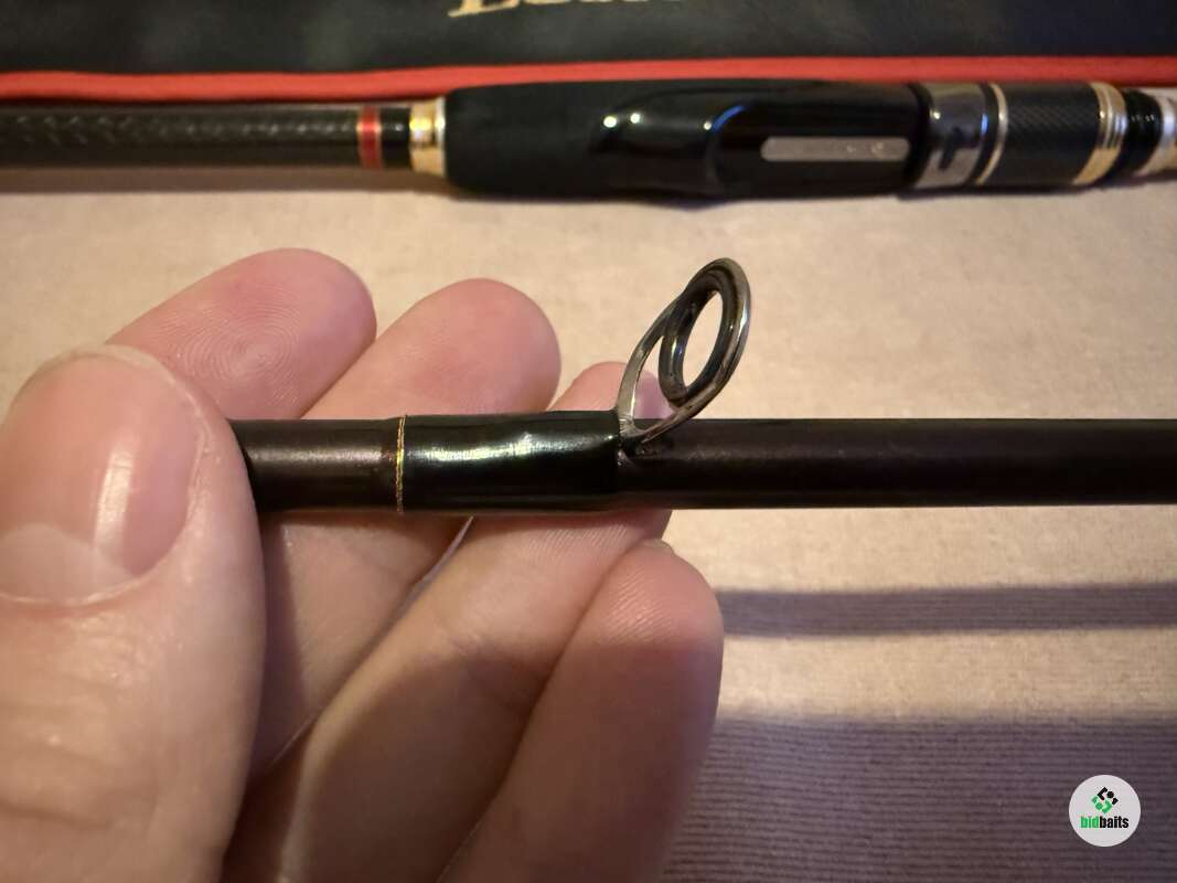 Спиннинг в отличном состоянии, шпигот не просажен (типичная болезнь спиннингов этой серии). Очень удачная модель для взрослого берегового джига, очень чуткая как при проводке, так и на поклевку. На забросе и вываживании хорошо включается