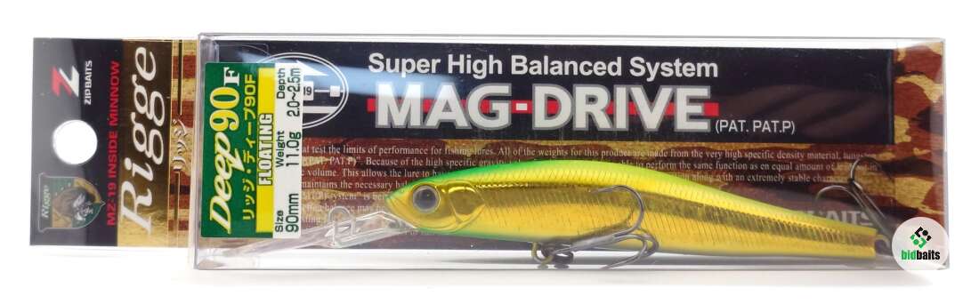 Воблер ZipBaits Rigge Deep 90F (90мм, 10,5г) цвет 665 Lime Chart Gold / KV