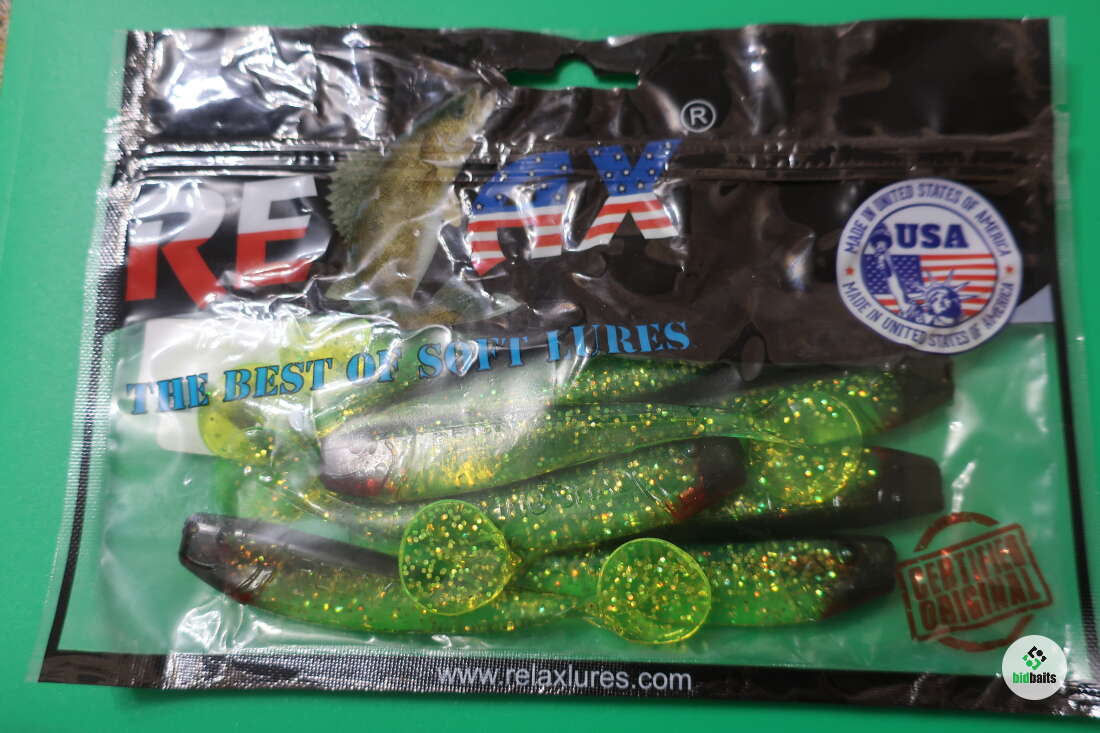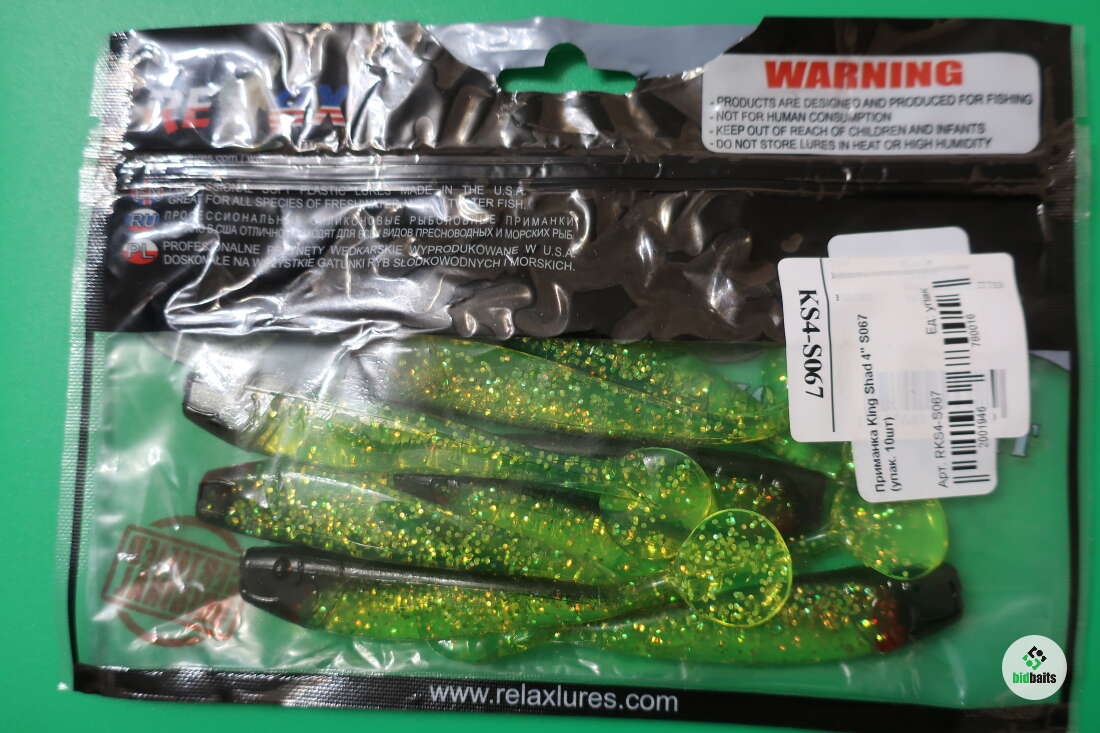 Relax King Shad 4" KS4 цвет S067 (black chartreuse hologram glitter) 8 приманок