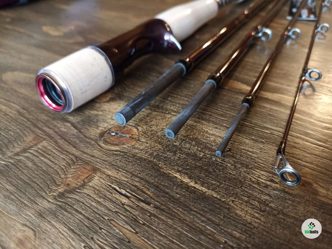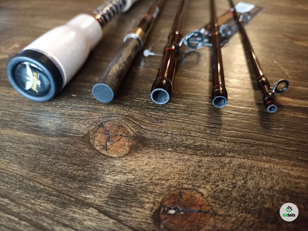 Легкий графитовый бланк с шпиготным соединением секций. Кольца Fuji Alconite, двухопорные рамки из нержавейки, оригинальная расстановка направляющих Fenwick. Верхнее кольцо большого диаметра. Оригинальный катушкодержатель Fenwick с верхним расположением гайки. Раздельная пробковая рукоять. Мягкий транспортировочный чехол.