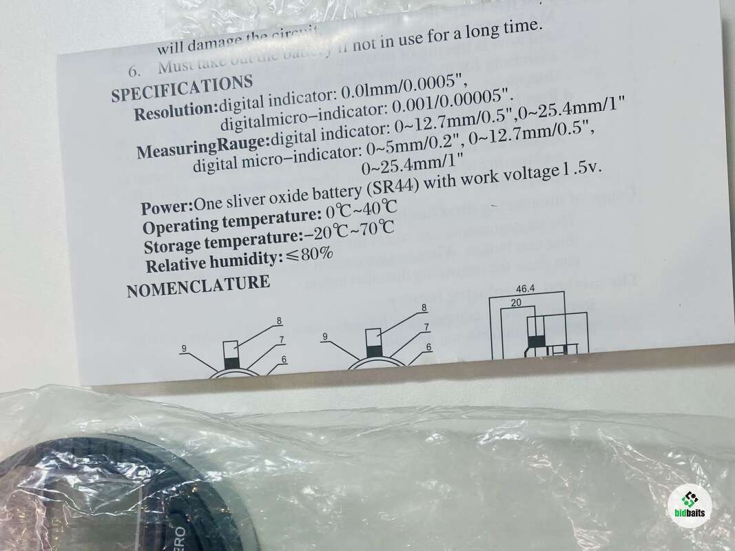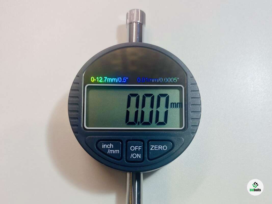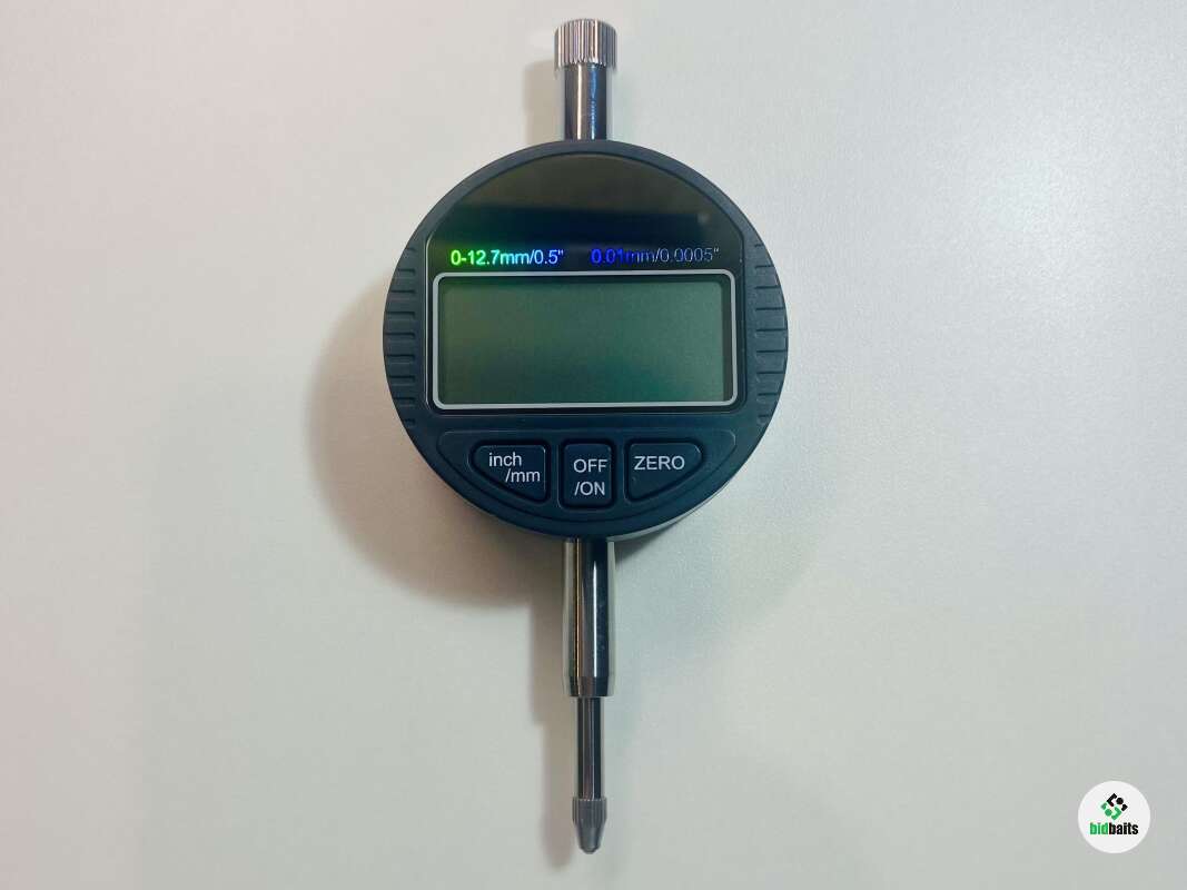 Электронный индикатор-микрометр оснащён большим ярким циферблатом диаметром и кнопками для переключения единиц измерения, установки на ноль и включения.