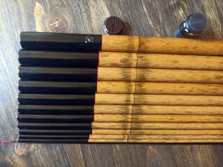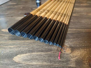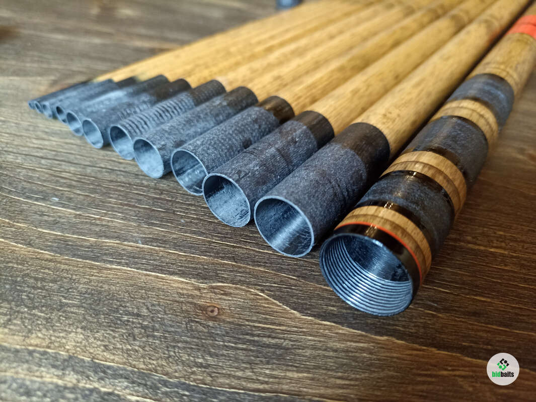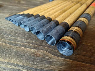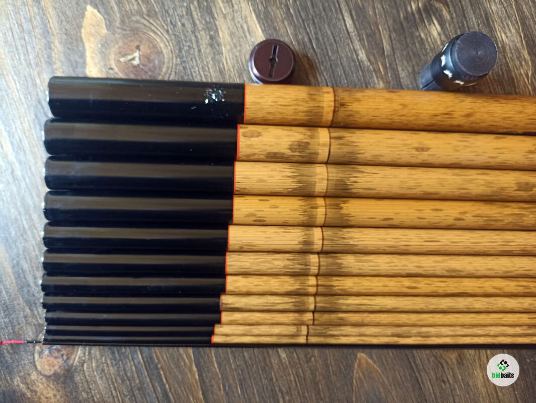 Линейка маховых удилищ для рыбалки в горных реках, окрашенных вручную, под бамбук. На отдельные элементы удочки кристалликами нанесено изображение японской камелии. Очень легкий, хорошо сбалансированный бланк, способный доставить не только удовольствие от рыбалки, но еще и эстетически очень красивый.