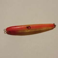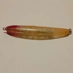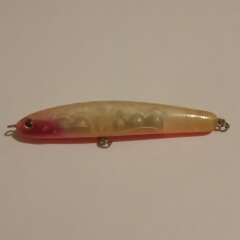 Тонущий воблер 80мм, 12гр. Состояние нормальное, есть многочисленные потертости лакокрасочного покрытия. Производитель не определен.