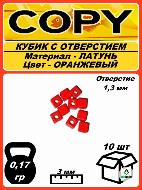 Кубик латунный для мормышек оранжевый (10шт)