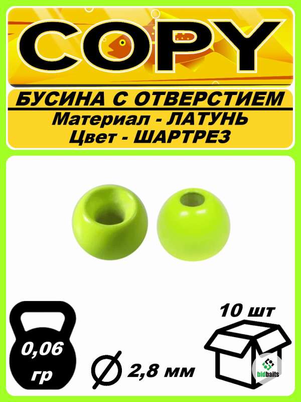 Бусина с отверстием Латунная Шартрез 2,8мм (10шт)