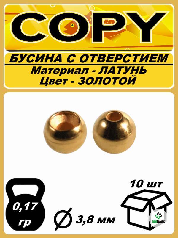 Бусина с отверстием Латунная Золотая 3,8мм (10шт)