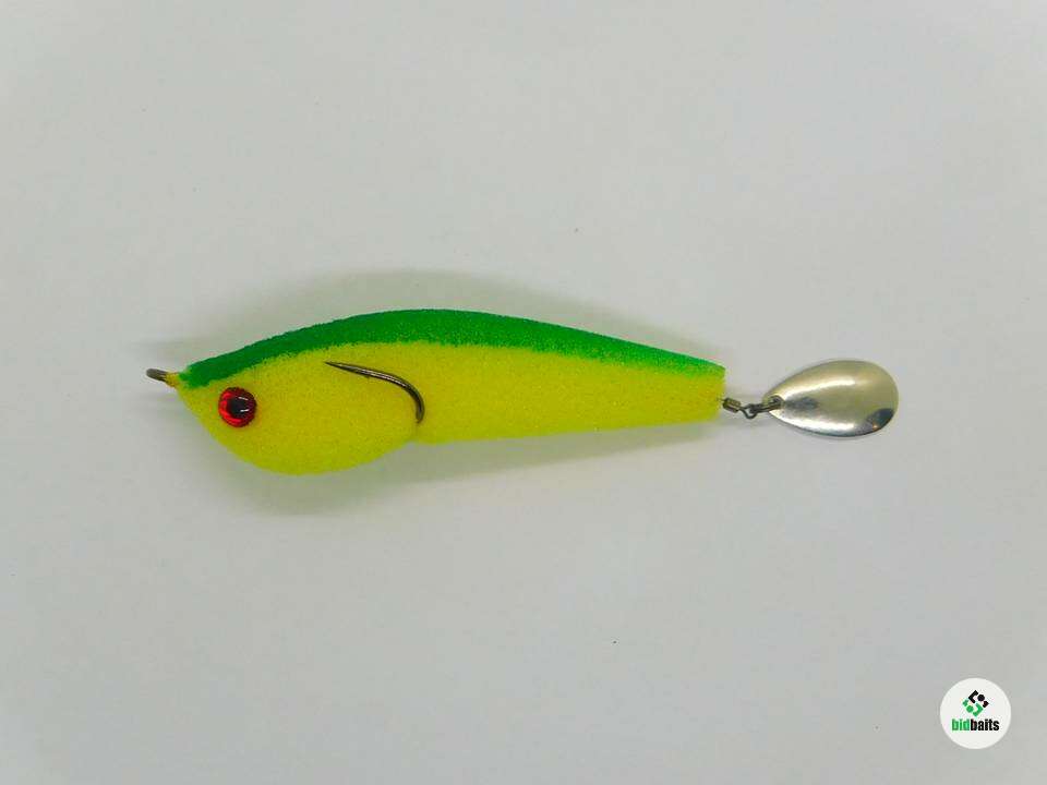 Приманка из поролона на двойнике Eagle Claw(прямое жало, длинное цевье) №1,0. Двойник слегка прижат к телу, что дает преимущество для ловли в корягах и не мешает реализации поклевок. При проводке лепесток начинает вращаться, а так же во время свободного падения, чего невозможно добиться никакими другими приманками. Тем самым привлекая к атаке любого хищника и некоторых видов мирных рыб. Поролон живой, не печеный. Полностью ручная работа. Длина поролонового тела примерно 9см.