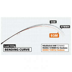 93M особенно хороша для работы с 7-12 сантиметровыми воблерами, которые обладают приличным лобовым сопротивлением. Особый строй обеспечивает быструю реакцию бланка на резкую поклевку, а также существенно снижает нагрузку на запястье при манипуляциях. Отлично отрабатывает все рывки рыбы и помогает на вываживании самых крупных экземпляров.