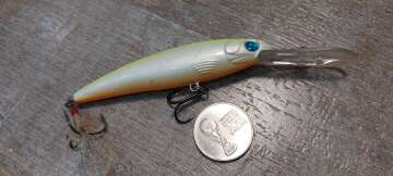Состояние на фото - в этом случае затрудняюсь дать объективную оценку воблеру, как правило следы использования ярко выражены, может быть не всё хорошо с лкп,но видимых дефектов по функционалу не обнаружено