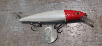 Состояние на фото - в этом случае затрудняюсь дать объективную оценку воблеру, как правило следы использования ярко выражены, может быть не всё хорошо с лкп,но видимых дефектов по функционалу не обнаружено