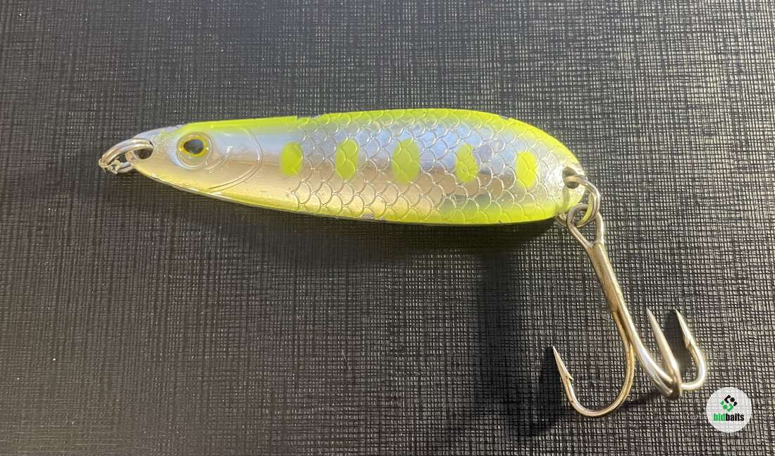 Блесна для ловли лосося (чавычи). Блесна отлично справятся с пробитием глубин, в хорошей яме, на любой реке. Даже на медленной, лососевой проводке, движения блесны агрессивные и уверенные. Отличается высокой дальностью заброса. Благодаря великолепной балансировке, может работать на очень дальних дистанциях, и при этом стабильно держит струю.