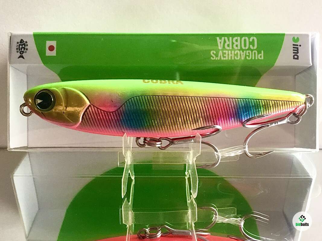 Pugachev's Cobra 90 очень интересная плавающая приманка от компании IMA . Это послушный волкер, не требовательный к качеству проводок. Благодаря хорошей аэродинамической форме тела и достаточному весу, воблер Ima Pugachev's Cobra летит на дальние расстояния с отличной точностью. Также этому способствует уникальная система балансировки и дальнего заброса, состоящая из трех вольфрамовых шариков различных размеров. Самый маленький шарик размещается по середине брюшка приманки, а самый большой и тяжелый - в хвостовой части тела. Такое расположение дает возможность не только далеко лететь воблеру Ima Pugachev's Cobra, но и всплывать во время проводки "свечкой", подтверждая свое название.
