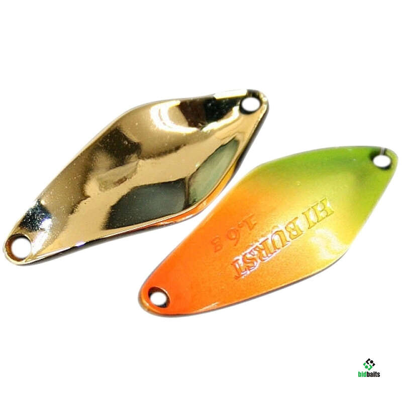Hi Burst – колеблющиеся блесны для ловли прудовой форели от японского бренда ValkeIN. Это классическая ромбовидная блесна с утяжеленной задней частью для максимально широкой игры на любых скоростях проводки. Hi Burst был разработан по концепции «High Appeal», что означает высокую привлекательность. Данная концепция обеспечивает видимость силуэта максимального размера. Отлично подходит для ловли активной рыбы. Оснащается одинарным безбородым крючком.