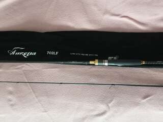 Старая версия made In Japan! Не путать с New. Спиннинги этой серии отличаются быстрыми бланками от Mitsubishi Rayon Co. Ltd. и сложным строем. Свое начало серия берет у одноименных удилищ внутреннего японского рынка для ловли басса. В наследство от японской серии эти удилища получили прекрасный потенциал мощности, а в процессе эволюции под наши условия приобрели более длинную рукоять для двуручного заброса, обновленный дизайн и фурнитуру. Серия, хоть и ориентировна для ловли рывковыми анимациями, но с легкостью допускает применение джиговых и блесенных оснасток, без потери контроля и чувствительности. Главным образом, назначение Aurelia – это ловля с берега и лодки на малых и средних реках в сложных условиях. Снят с производства, больше таких не будет! Брал в коллекцию у человека, после нескольких рыбалок, в отличном состоянии, сам не ловил. Есть видео обзор на данный спиннинг на Ютубе.