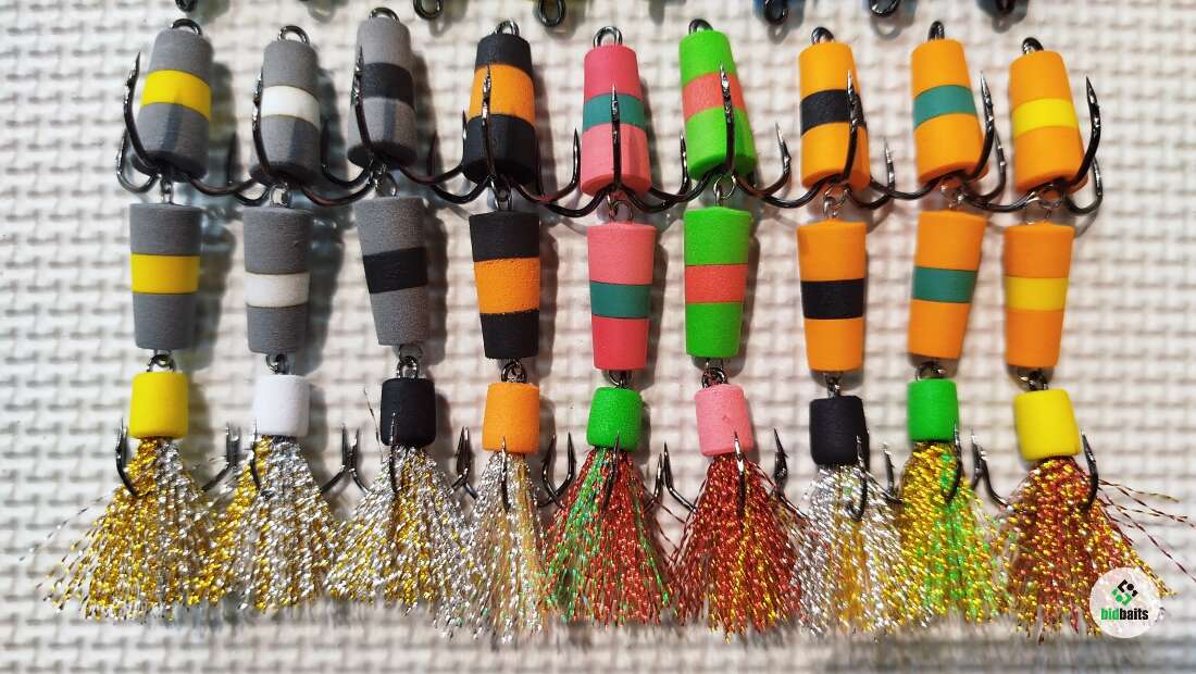 Оснащены острыми тройниками Barbarian с обратным жалом в классической комбинации размеров.