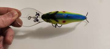 1 раз был в воде. На теле есть несколько отметин от крючков. Состояние нового.