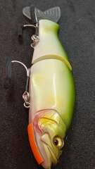 Megabass I-Slide 135B представляет собой безлопастную составную приманку класса свимбейт, предназначенную для ловли хищной рыбы на мелководье. Корпус воблера разделён на две части, которые соединены между собой парой металлических петель. Это придаёт конструкции большую подвижность и добавляет привлекательность приманке при проводке. В торце зафиксирован мягкий эластичный хвостик. Его особенностью является несимметричность двух половинок, и то, что он съёмный. Эта плавающая модель максимально точно имитирует реальную рыбку. Отличительная особенность мощных крюков - опушка из люрекса. Система дальнего заброса у воблера отсутствует. Однако внутри корпуса находятся металлические грузы, отвечающие за балансировку, и издающие во время проводки отчётливый слышимый звук. За счёт составной конструкции для этой приманки можно применять различные способы анимации. Во время равномерной или «стоп-энд-гоу» проводок воблер будет идти змейкой. Также приманка отлично отзывается на твичинг, при котором лучше делать более плавные рывки, чтобы избежать перехлёста тройников за леску. Основным объектом ловли станет щука, которая любит выходить на охоту на мелководные участки. Модель представлена большим разнообразием расцветок.