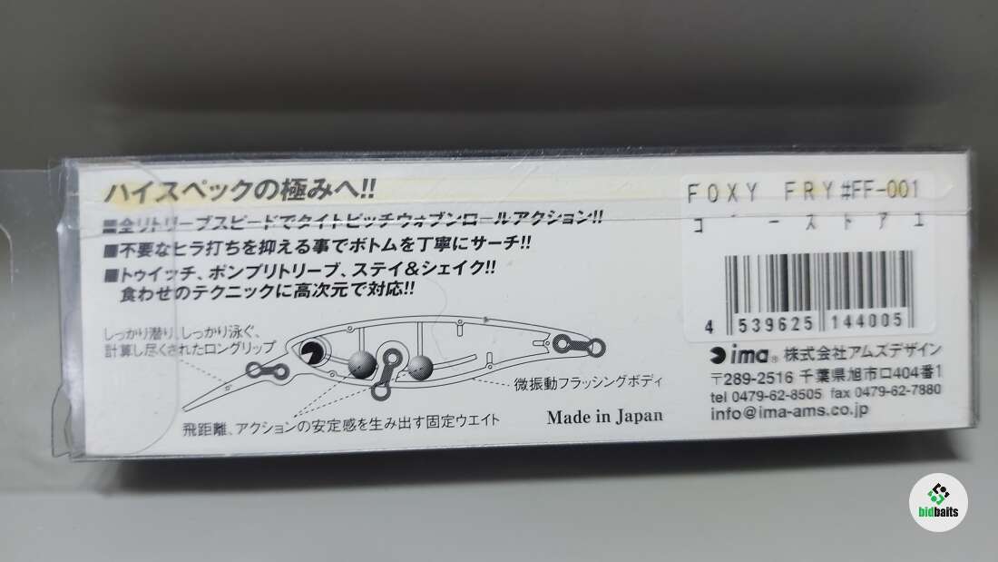 От новой, для уха российского спиннингиста, японской компании не стоит ожидать подвоха. Созданная в 1998 году торговая марка IMA - достойный представитель знаменитой японской школы приманок и воблер Ima Foxy Fry этому яркое подтверждение. Достаточно взглянуть на него, подержать в руках, забросить изящной лайтовой снастью, чтобы всё понять. Качество форм, материала, отделки, фурнитуры, у него истинно японское: