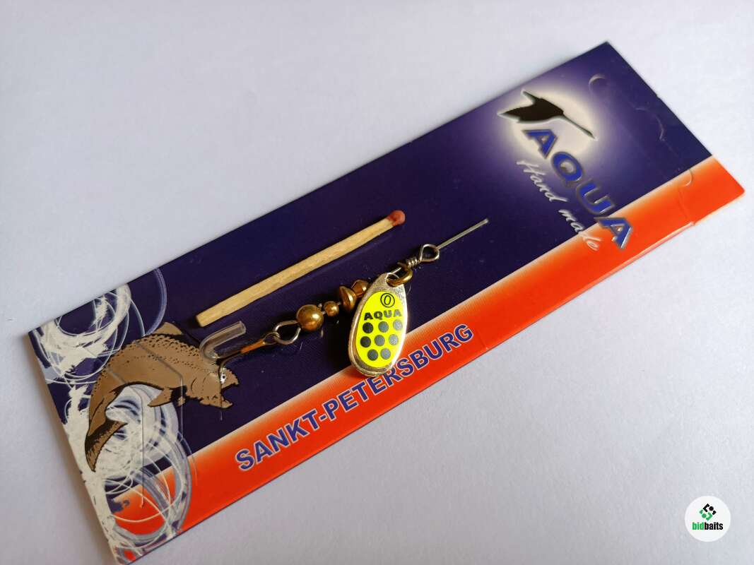 Вращающаяся блесна (вращалка) AQUA Aglia 0 (серебро, желтый, черный) 2 г.