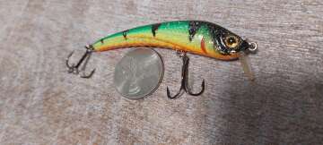 Состояние на фото - в этом случае затрудняюсь дать объективную оценку воблеру, как правило следы использования ярко выражены, может быть не всё хорошо с лкп,но видимых дефектов по функционалу не обнаружено