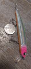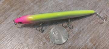 Состояние на фото - в этом случае затрудняюсь дать объективную оценку воблеру, как правило следы использования ярко выражены, может быть не всё хорошо с лкп,но видимых дефектов по функционалу не обнаружено