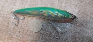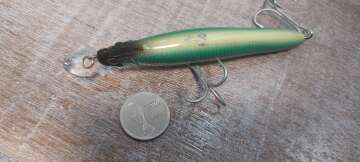 Состояние на фото - в этом случае затрудняюсь дать объективную оценку воблеру, как правило следы использования ярко выражены, может быть не всё хорошо с лкп,но видимых дефектов по функционалу не обнаружено