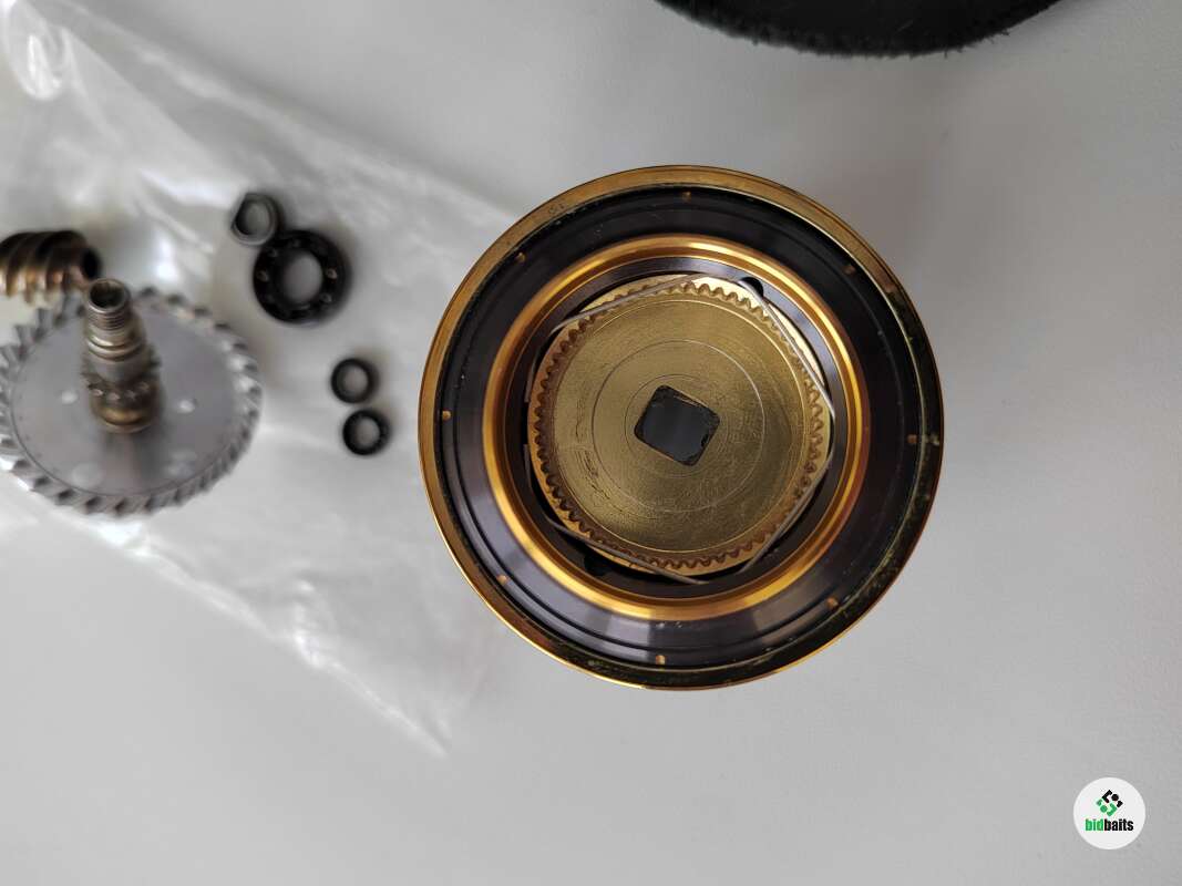 Главная пара, подшипники ведущей шестерни и в кнобе заменены на новые. После замены на рыбалке не была, хранилась в коллекции.