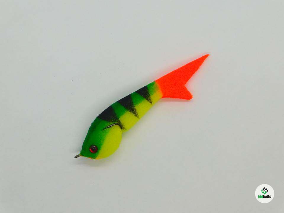 Поролоновая приманка из очень мягкого мелкопористого поролона на двойнике Eagle Claw(загнутое жало) №2, универсальная для ловли как крупного, так и мелкого хищника. Двойник слегка прижат к телу, что дает преимущество для ловли в корягах и не мешает реализации поклевок. В окрасе присутствует флуоресцентная краска. Поролон живой, не печеный. Полностью ручная работа, длина 10см