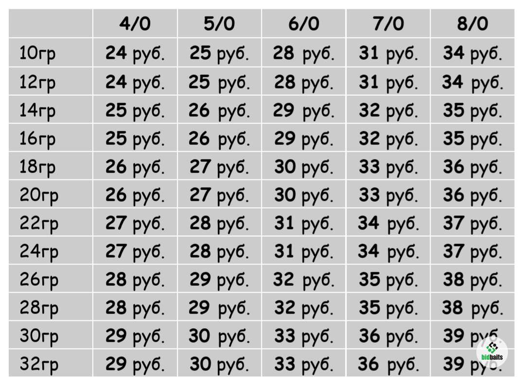 Цены на фото на джиги без доп. ушка.
