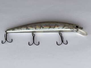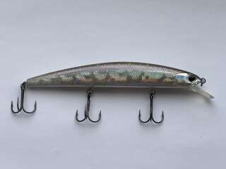 OSP Rudra 130SP. Оригинал! Цвет: # H-23 Ginrin. Новый, без коробки. OSP Rudra 130SP – один из самых легендарных представителей семейства биг-минноу с огромным потенциалом, раскрывающимся при ловле крупной щуки. Приманка имеет удивительную игру, состоящую из колебаний двух типов. Роллинговые движения в большей степени влияют на привлекательность minnow при использовании базовой равномерной подачи, на которой он изящно «сверкает» боками, поворачиваясь вдоль продольной оси. Вобблинг в поведении Rudra 130SP появляется на твичинге. Даже не очень сильные рывки заставляют «Рудру» амплитудно «нырять» в стороны, отклоняясь от направления проводки на 70-90 градусов. Отзывчивость воблера OSP Rudra 130SP на различные манипуляции спиннингом обусловлена его конструктивным исполнением с низко расположенным центром тяжести. Основная огрузка приманки, отвечающая за ее правильную балансировку, сосредоточена в тяжелых металлических пластинах, закрепленных в районе брюшка. Подвижные шары, перемещающиеся по специальному каналу, играют роль дальнобойной системы. К слову, с дальностью заброса у Rudra 130SP дела обстоят более чем хорошо. Значительные габариты, присущие воблеру Rudra 130SP, «отфильтровывают» поклевки мелких «зубастых», хотя иногда на него все-таки попадаются щучки-травянки. Вес(гр): 20