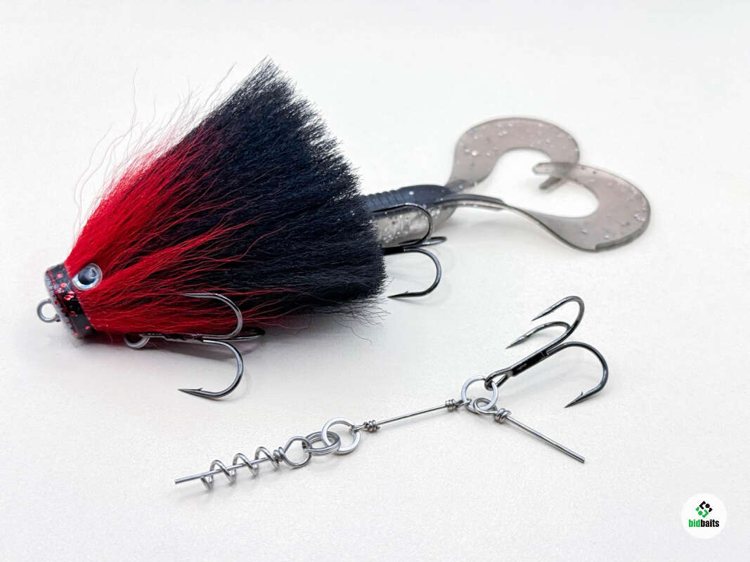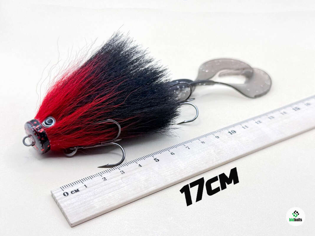 Голова мыши выполнена из натурального меха хвоста оленя - Bucktail с добавлением синтетического меха разных цветов). Мех имеет очень реалистичную игру в воде, дышит и создает пузыри воздуха, что сильно влияет на привлечение рыбы и лучшей видимости приманки при ловле с Паноптикс Panoptix. Стингер выполнен из нержавеющей проволоки и оснащен качественными корейскими крючками и фурнитурой. Хвост приманки изготовлен из съедобного силикона.