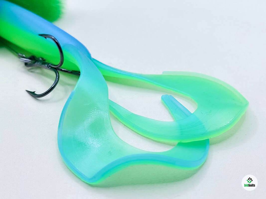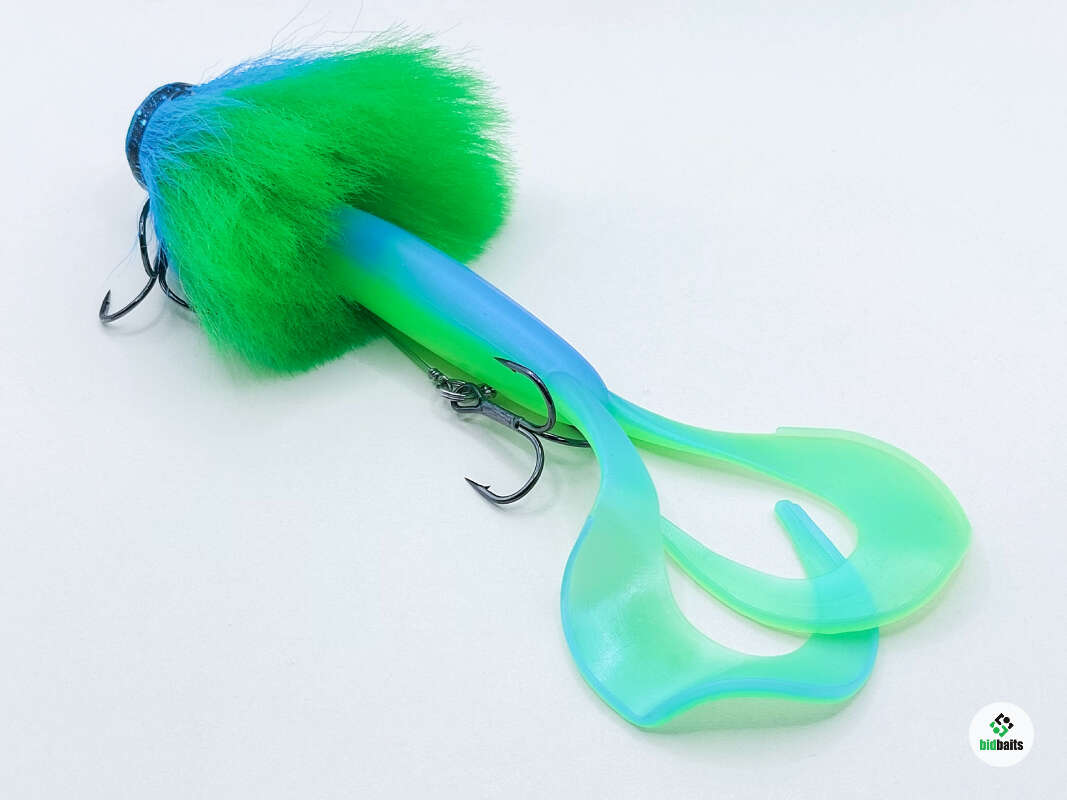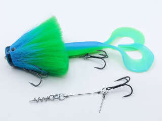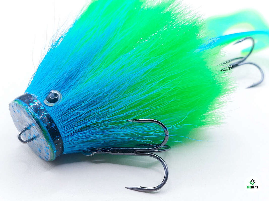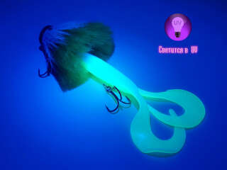 Голова мыши выполнена из натурального меха хвоста оленя - Bucktail с добавлением синтетического меха разных цветов). Мех имеет очень реалистичную игру в воде, дышит и создает пузыри воздуха, что сильно влияет на привлечение рыбы и лучшей видимости приманки при ловле с Паноптикс Panoptix. Стингер выполнен из нержавеющей проволоки и оснащен качественными корейскими крючками и фурнитурой. Хвост приманки изготовлен из съедобного силикона.