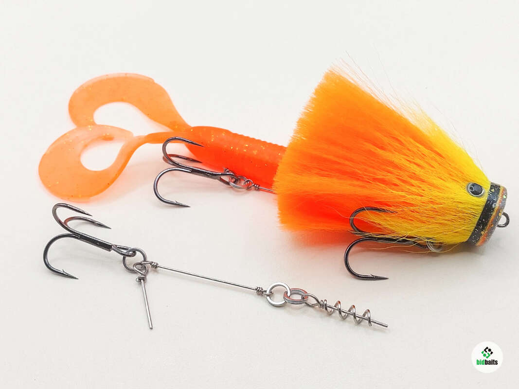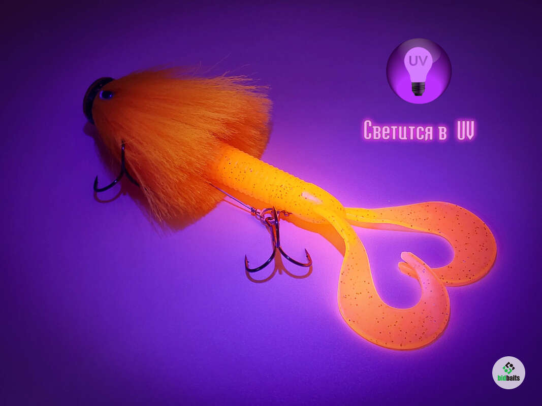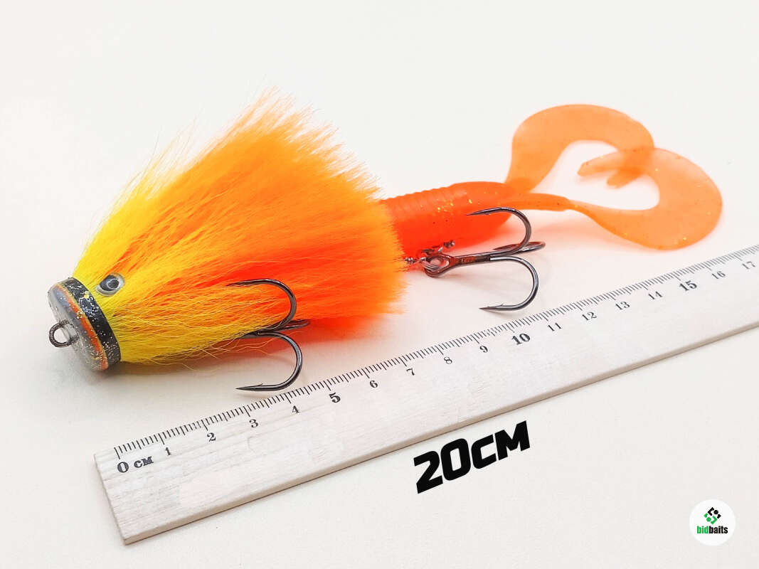 Голова мыши выполнена из натурального меха хвоста оленя - Bucktail с добавлением синтетического меха разных цветов. Мех имеет очень реалистичную игру в воде, дышит и создает пузыри воздуха, что сильно влияет на привлечение рыбы и лучшей видимости приманки при ловле с Паноптикс Panoptix. Стингер выполнен из нержавеющей проволоки и оснащен качественными корейскими крючками и фурнитурой. Хвост приманки изготовлен из съедобного силикона.