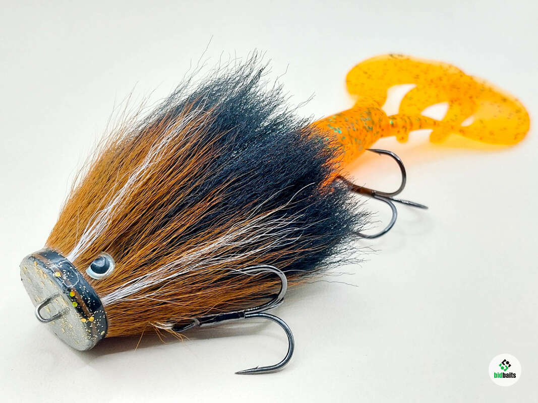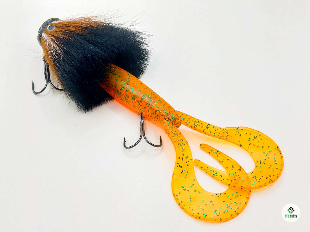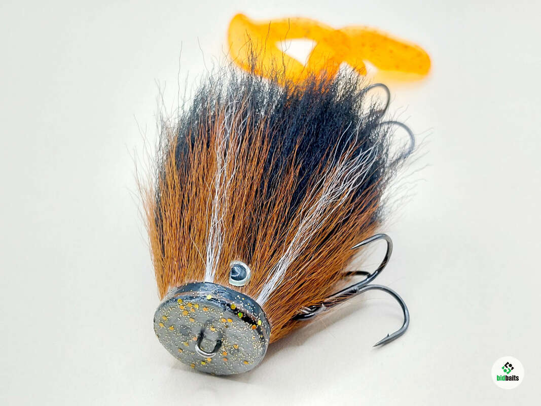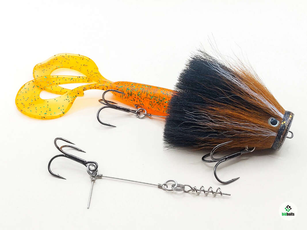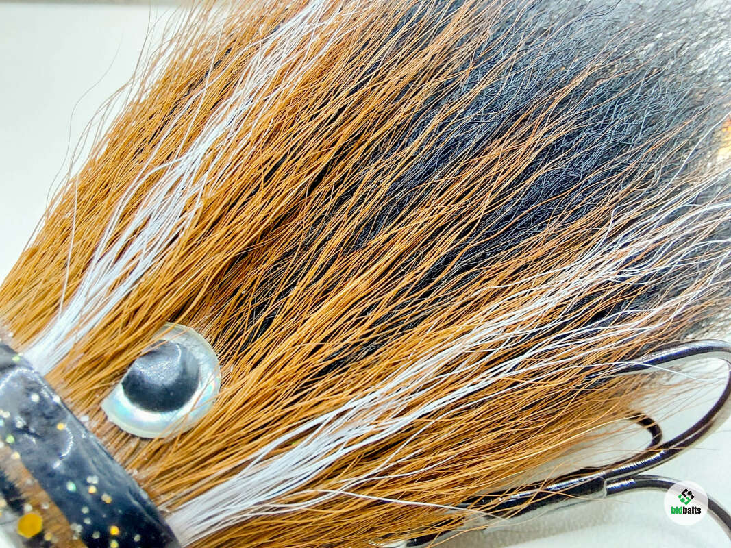 Голова мыши выполнена из натурального меха хвоста оленя - Bucktail с добавлением синтетического меха разных цветов. Мех имеет очень реалистичную игру в воде, дышит и создает пузыри воздуха, что сильно влияет на привлечение рыбы и лучшей видимости приманки при ловле с Паноптикс Panoptix. Стингер выполнен из нержавеющей проволоки и оснащен качественными корейскими крючками и фурнитурой. Хвост приманки изготовлен из съедобного силикона.