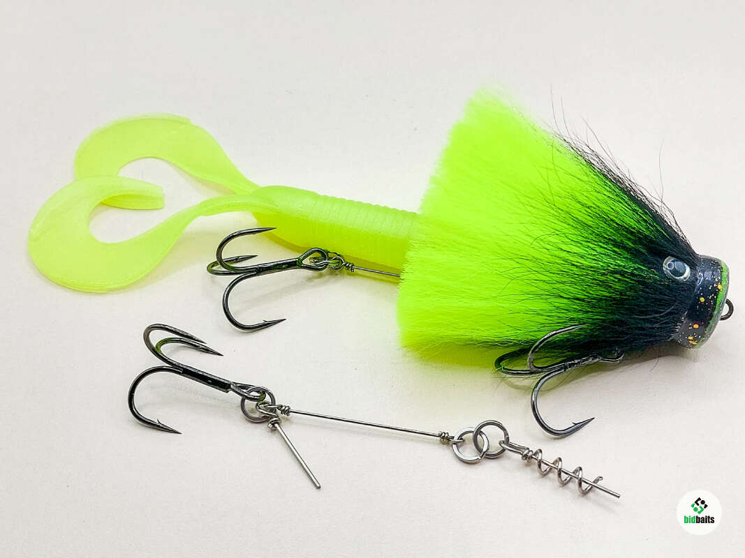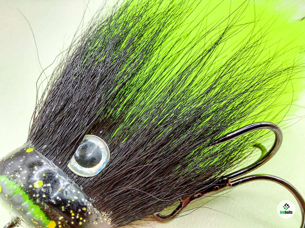 Голова мыши выполнена из натурального меха хвоста оленя - Bucktail с добавлением синтетического меха разных цветов. Мех имеет очень реалистичную игру в воде, дышит и создает пузыри воздуха, что сильно влияет на привлечение рыбы и лучшей видимости приманки при ловле с Паноптикс Panoptix. Стингер выполнен из нержавеющей проволоки и оснащен качественными корейскими крючками и фурнитурой. Хвост приманки изготовлен из съедобного силикона.