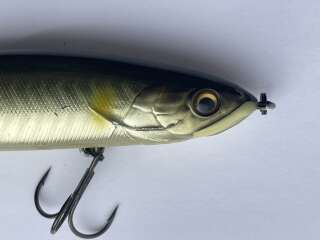 FLT Zillva 160SS. Оригинал! Цвет: # Ayu. Справа, ближе к голове отслаивается краска (смотрите фото) Двусоставная приманка FLT( Flex Lure Technology) с силиконовым хвостом. Воблер выполнен в медленно тонущей версии, которая дает возможность облавливать и меляки вдоль травы или между островками водорослей или же заглубить его на любую нужную глубину и проводить равномерной проводкой, потяжками, рывками или твичингом. Легендарная приманка на щуку, хотя изначально она использовалась и используется для ловли большеротого окуня (басса). Вес(гр): 37