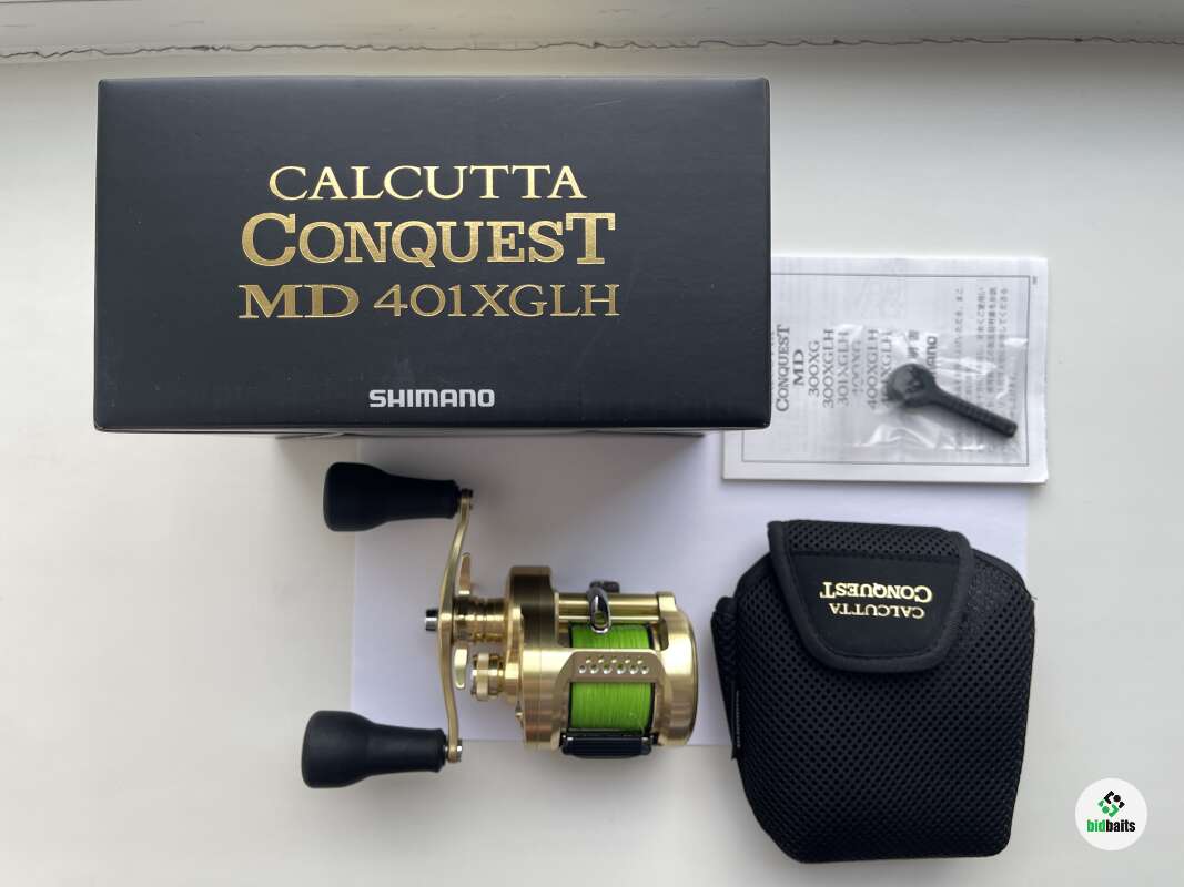 Shimano 23 Calcutta Conquest MD 401XGLH (JDM). Новая! Покупалась в Японии. Ставил на спиннинг один раз, для намотки шнура Sunline Siglon PE×4 # 2 (35lb 15,5кг 0.242мм 300м) #Light Green. Оставлю в качестве бонуса. Из дома не выносил! Флагманская круглая катушка MONSTER DRIVE для ловли фристайлом, при котором используются различные приманки. Катушка имеет максимальную длину намотки за один оборот ручки 101 см и максимальное усилие сопротивления 8 кг что позволяет ее использовать в ловле крупной рыбы. Конструкция, в которой микромодульный редуктор и бесконечный привод, отвечающие за плавное и быстрое вращение, покрыты высоко-жестким корпусом HAGANE, обеспечивает безопасную и комфортную работу. Удобный для захвата корпус, который был разработан, чтобы быть более компактным, чем его предшественник, еще больше повысил ощущение стабильности в руке. Также следует отметить установку SVS MD TUNE. SVS MD TUNE с улучшенной способностью дальнего заброса и сопротивлением люфту, равномерным ветром, который плавно выбрасывает леску при отпускании тормоза и т. д. Made in Japan (JDM) Японский внутренний рынок Вес (г): 365