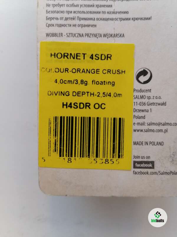 Новый Salmo Hornet 4SDR, цвет - ORANGE CRUSH (OC), плавающий. Длина - 4 см., вес - 3,8 грамма. Заглубление: 2,5/4,0 метра.