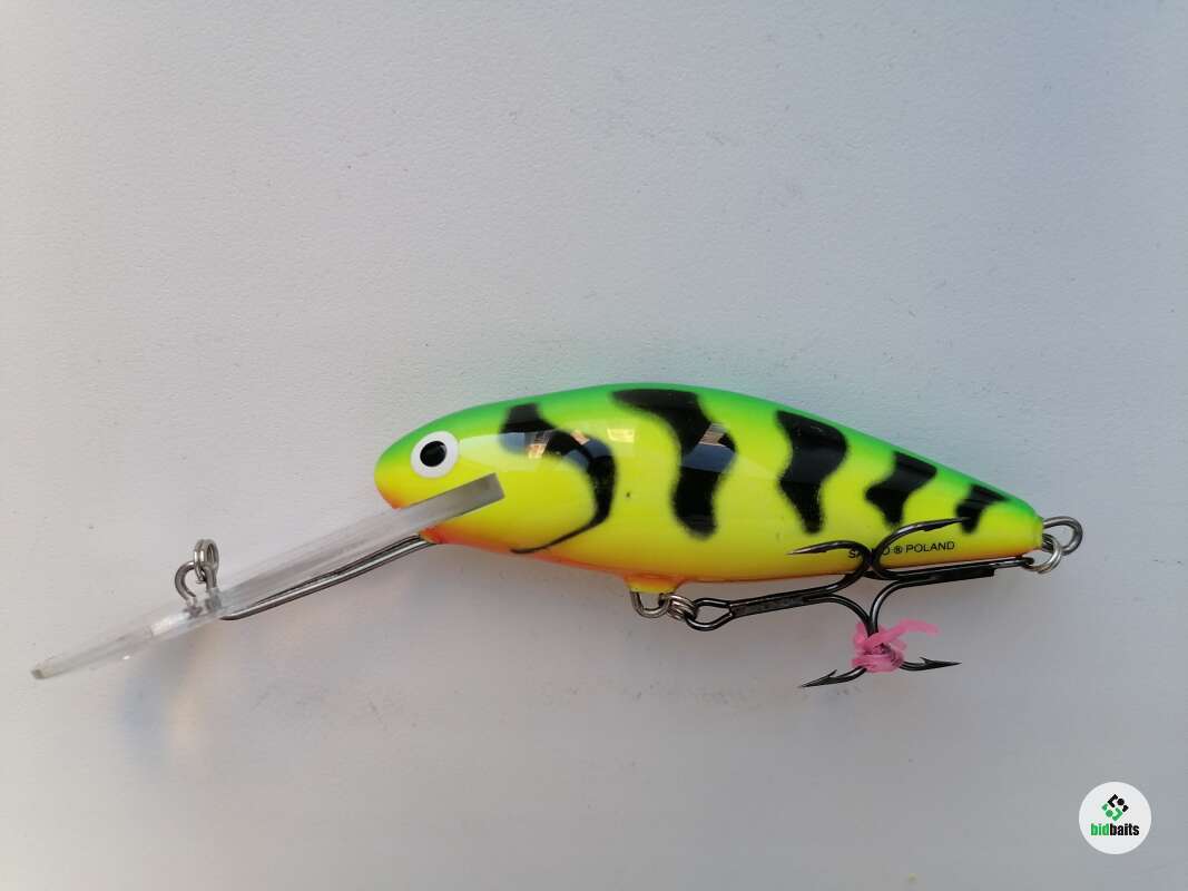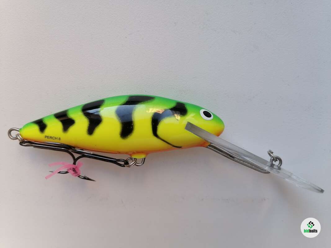Salmo Perch 8SDR, цвет - GREEN TIGER (GT), плавающий, в хорошем состоянии, смотреть фото. Длина - 8 см., вес - 17 грамм. Заглубление: 3,0-6,0 метров.