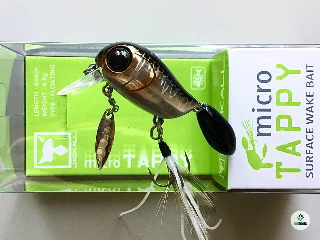 Micro Tappy 54F - небольшой воблер класса "crank", который особенно ценится у любителей ловли белого хищника. Подповерхностное заглубление воблера позволяет облавливать заросшие и труднодоступные места водоема. Приманка оснащена множеством подвижных элементов для привлечения рыбы и соблазнения её на поклёвку. Jackall Micro Tappy имеет объёмное пузатое тело с широкой лопаткой, которая создаёт активную виляющую игру во время проводки. Единственный тройник, установленный на животе, оснащён бородкой из комбинации перьев и силиконовых полосок. Это помогает стабилизировать приманку, спрятать тройник и создать дополнительную струящуюся игру, привлекающую хищника. В нижней части воблера также имеется металлический лепесток, закреплённый на вертлюжке, который вращается во время проводки, при этом бликуя. В задней части Micro Tappy закреплён пластиковый хвост повышенной плавучести, что сделано для того, чтобы создавать дополнительные волнения на поверхности и пускать усы во время движения. Данная особенность добавляет воблеру привлекательности в воде и обеспечивает гарантированный улов даже в период низкой активности рыбы. Jackall Micro Tappy разработан для ловли басса у поверхности воды, у нас же он отлично работает по окуню и голавлю.