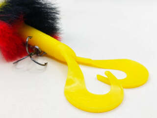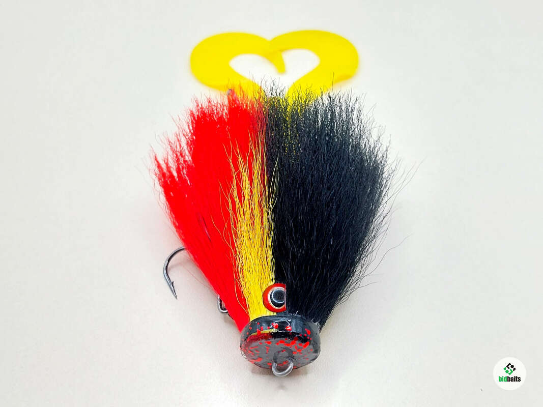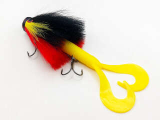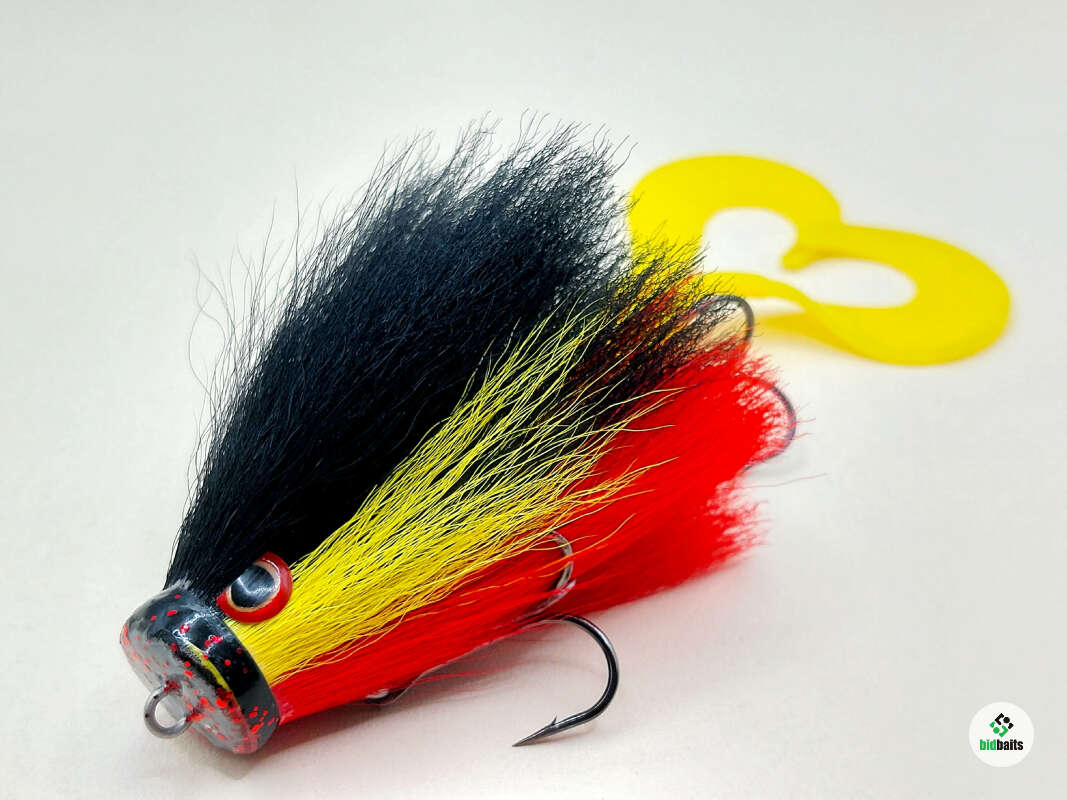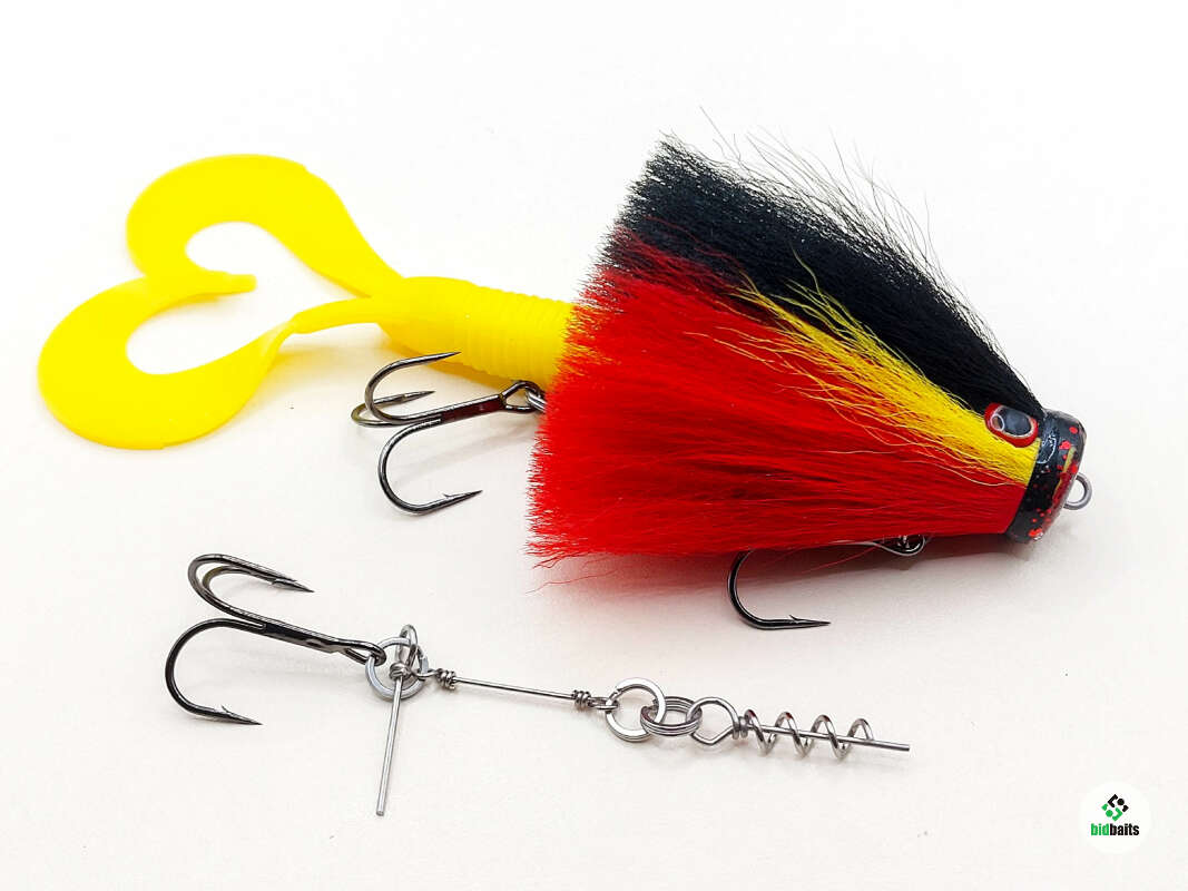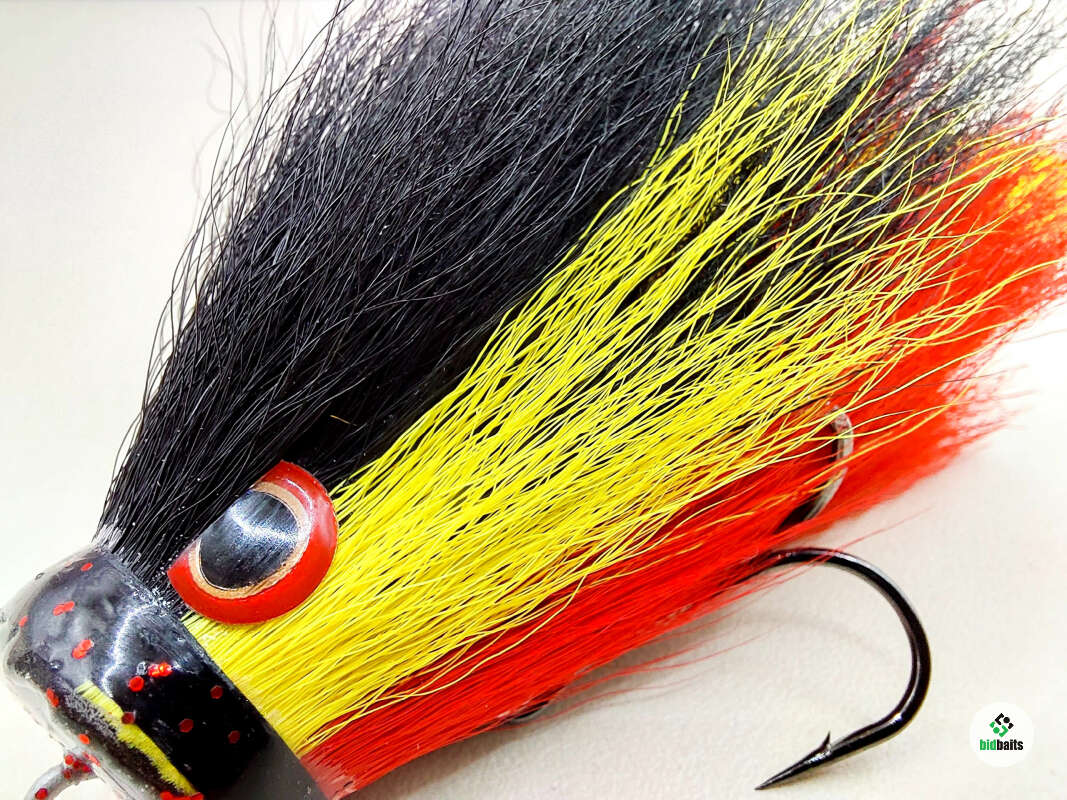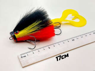 Голова мыши выполнена из натурального меха хвоста оленя - Bucktail с добавлением синтетического меха разных цветов). Мех имеет очень реалистичную игру в воде, дышит и создает пузыри воздуха, что сильно влияет на привлечение рыбы и лучшей видимости приманки при ловле с Паноптикс Panoptix. Стингер выполнен из нержавеющей проволоки и оснащен качественными корейскими крючками и фурнитурой. Хвост приманки изготовлен из съедобного силикона.