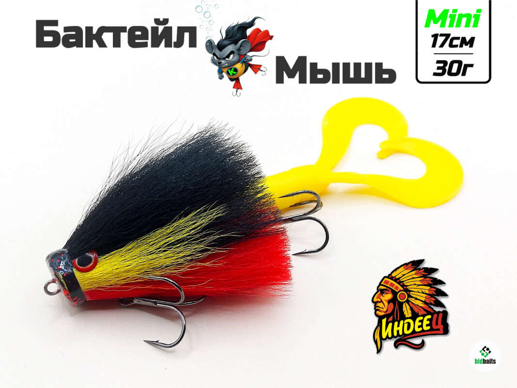 Бактейл мышь Mini на щуку цвет "Индеец" ручной работы