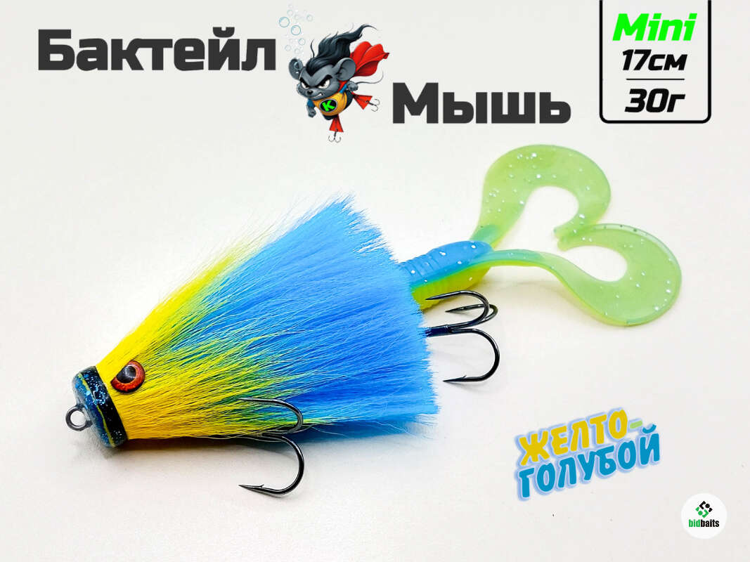 Бактейл мышь Mini на щуку цвет "Желто-голубой" ручной работы