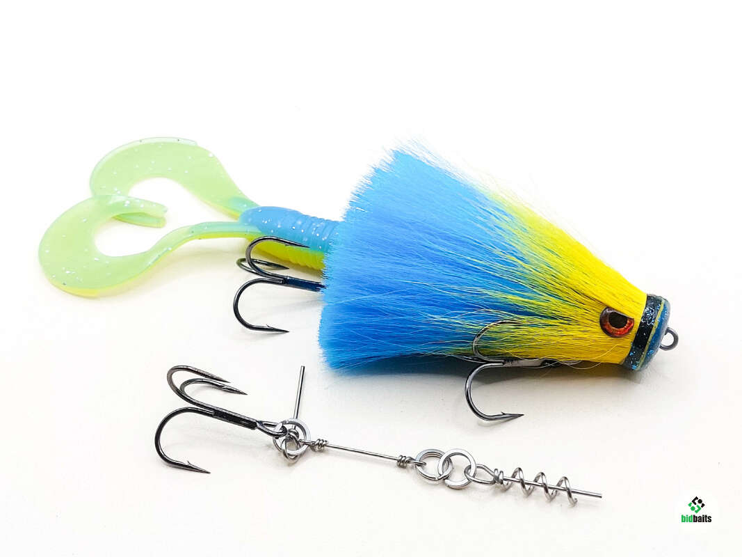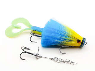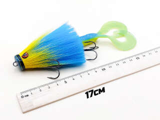 Голова мыши выполнена из натурального меха хвоста оленя - Bucktail с добавлением синтетического меха разных цветов). Мех имеет очень реалистичную игру в воде, дышит и создает пузыри воздуха, что сильно влияет на привлечение рыбы и лучшей видимости приманки при ловле с Паноптикс Panoptix. Стингер выполнен из нержавеющей проволоки и оснащен качественными корейскими крючками и фурнитурой. Хвост приманки изготовлен из съедобного силикона.